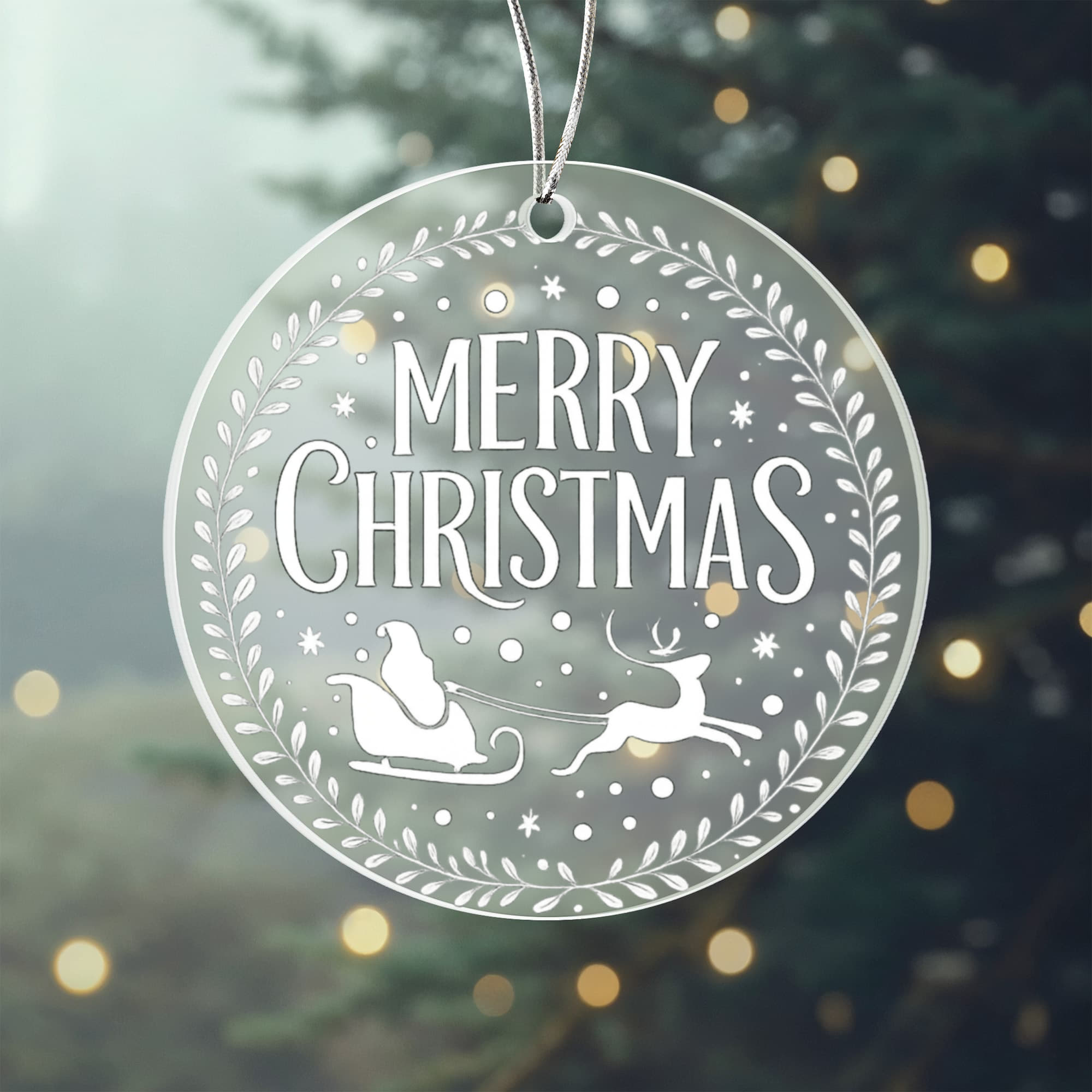 Merry Christmas Santa Sleigh Ornament – Cozy Rustic Wreath Design | Perfect Holiday Tree Decor
